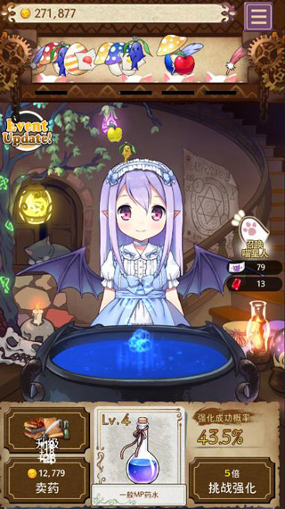 2、游戏玩法就是把材料放入锅中,炼成药水,然后卖钱,然后升级素材制作更棒的药水