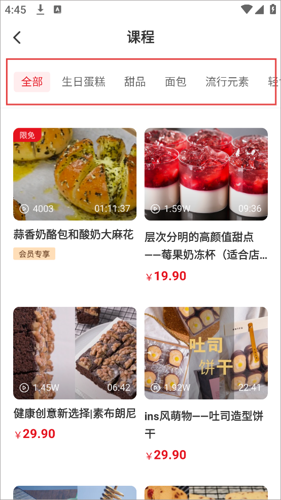1、包含了很多的甜点、面包、奶制品等课程,非常丰富齐全。