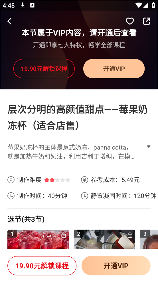3、点击你想要学习的课程,本软件提供的课程大部分需要购买或者充值会员;