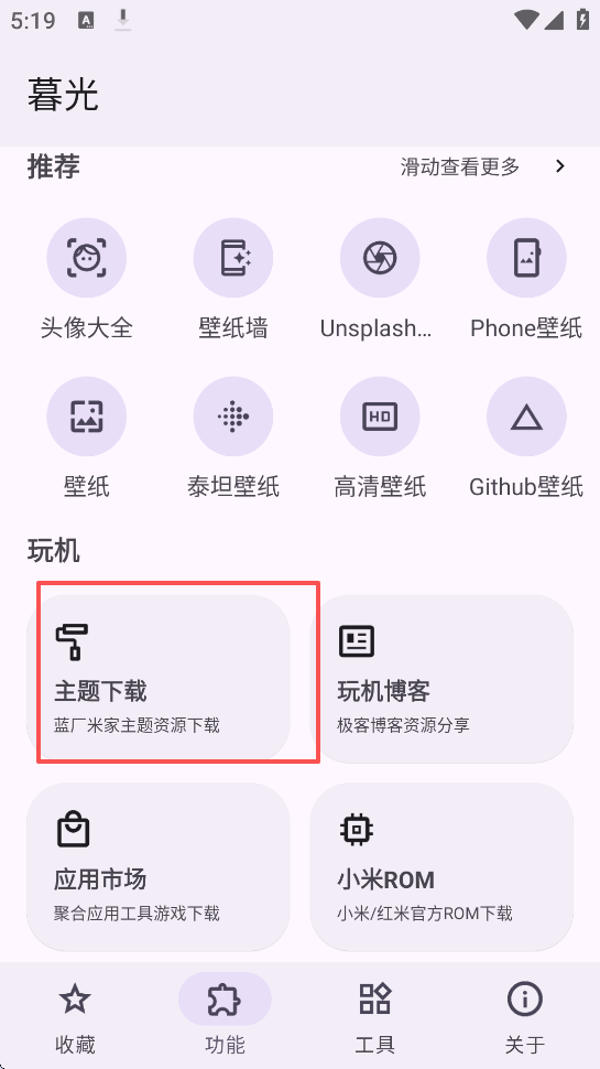 暮光工具箱是一款轻量多功能聚合的工具箱app。该软件内整合了壁纸头像、视频解析、文本处理、图像编辑、单位换算、开发者工具等数十种功能,在这里用户不仅可以下载海量高清壁纸和头像,还能轻松实现解析抖音、B 站等多平台视频的去水印,OCR、语音转文字等便民功能,覆盖娱乐、办公、开发等多元场景,让你无需安装多个独立app,一键操作即可高效解决多类需求。
