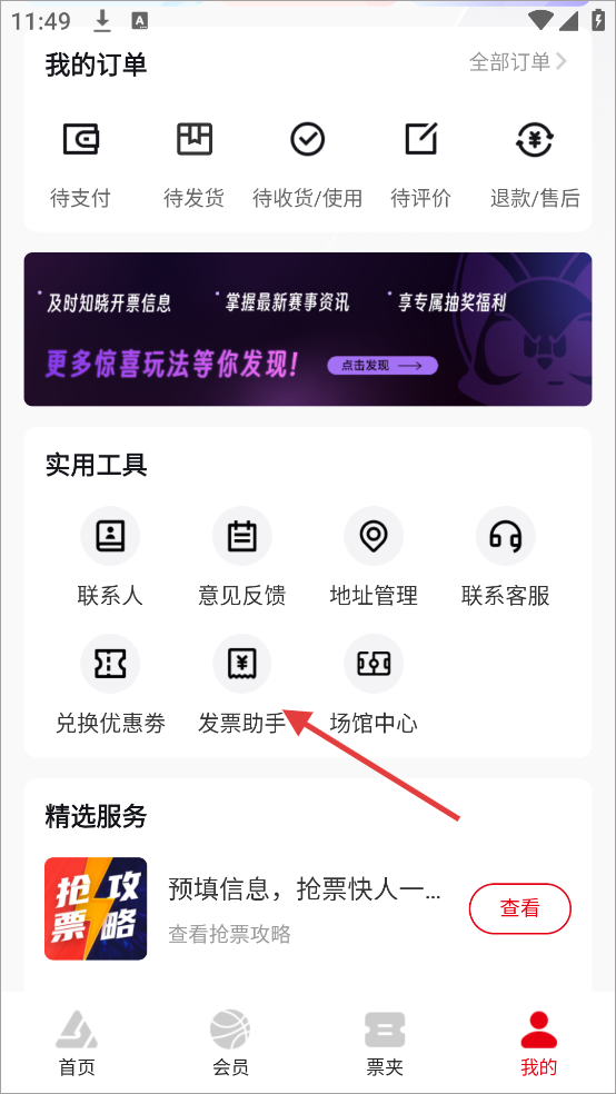 5、如需打印发票可以在个人中心界面中的点击【发票助手】进行操作。