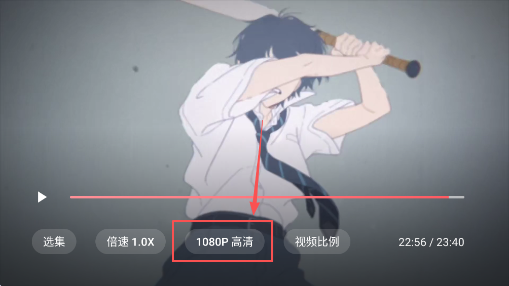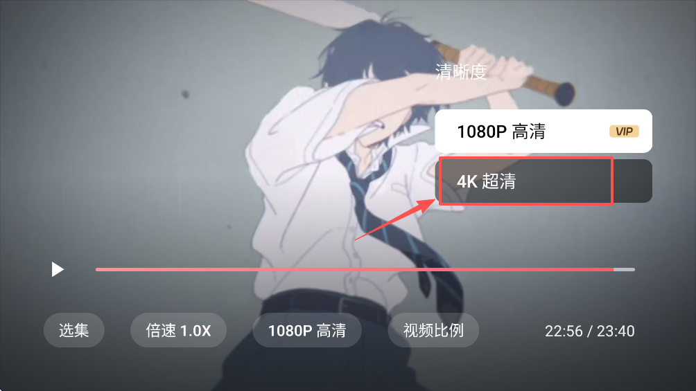 2、进入播放界面后,使用遥控下键唤醒菜单,并点击画质选项