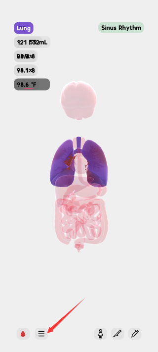 12、点击右下角的注射器图标,可以为模型注射不同的药物以观察其反应,或者观察模型进食后的情况。