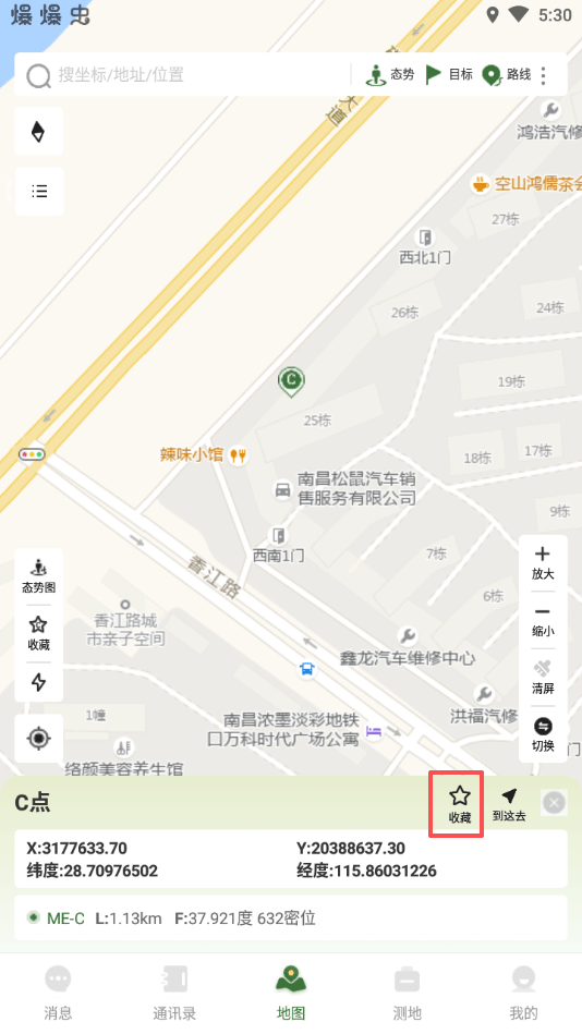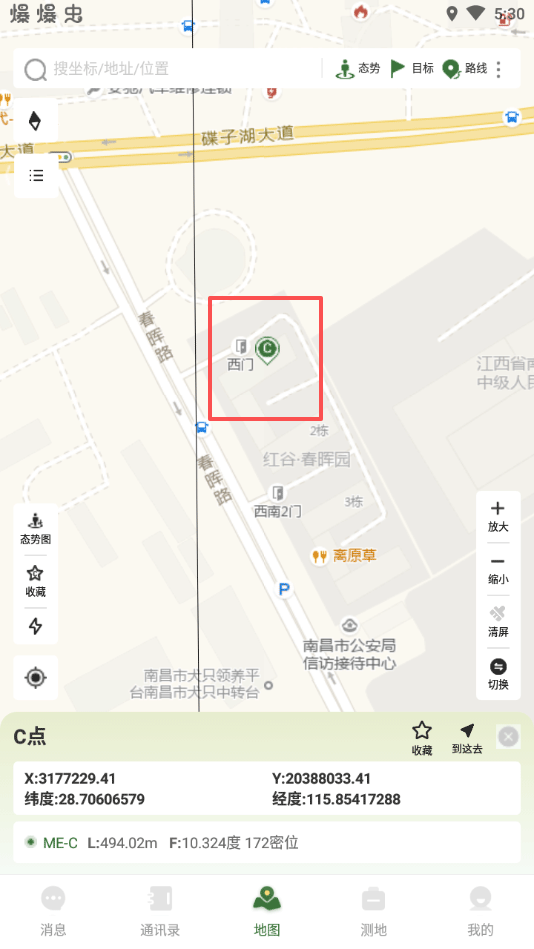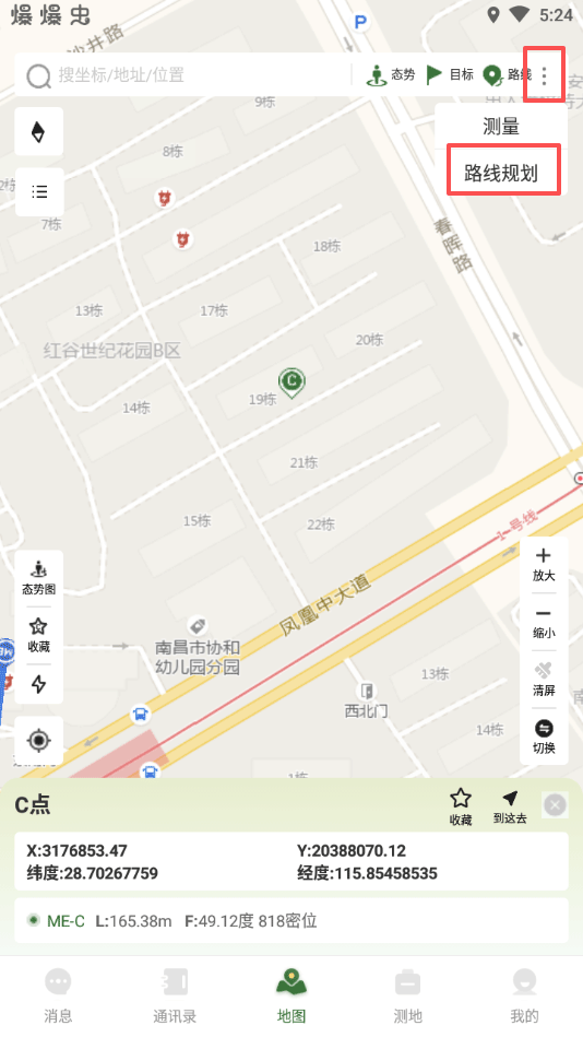2、战迹地图app支持测距离、测方向、测角度、测面积