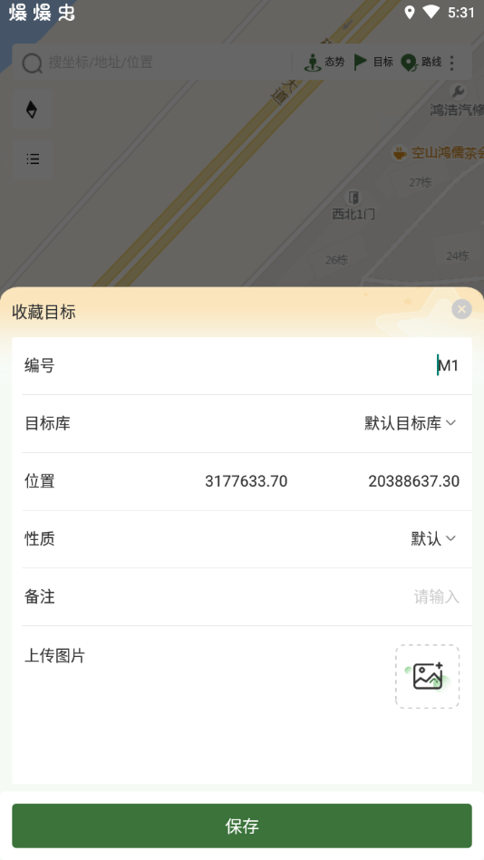 3、创建该目标编号等信息后点击保存按键即可在地图上标识