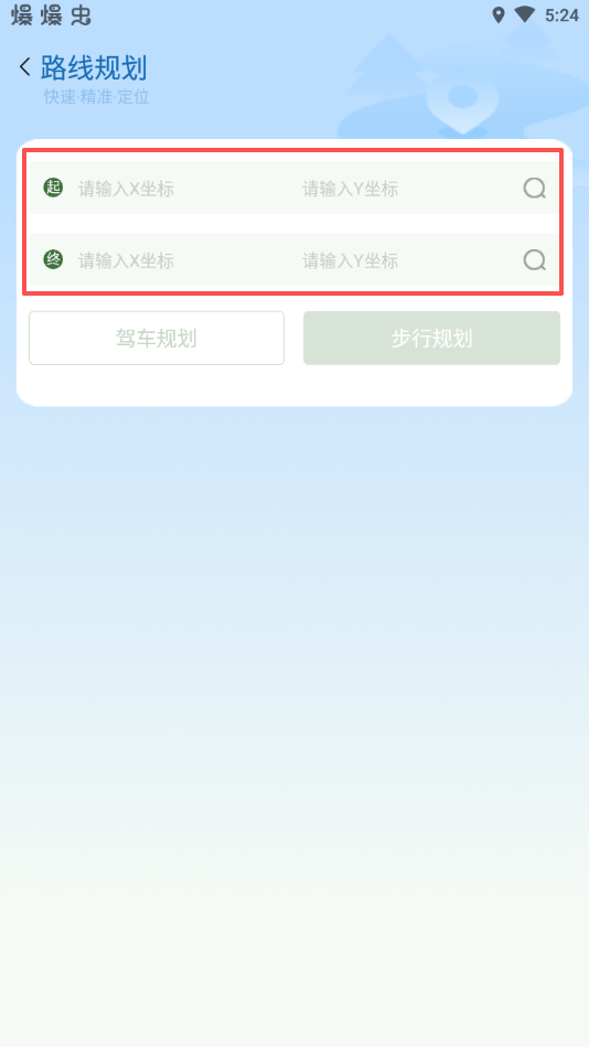 2、添加起始点和终点的坐标,并选择驾车规划或步行规划即可