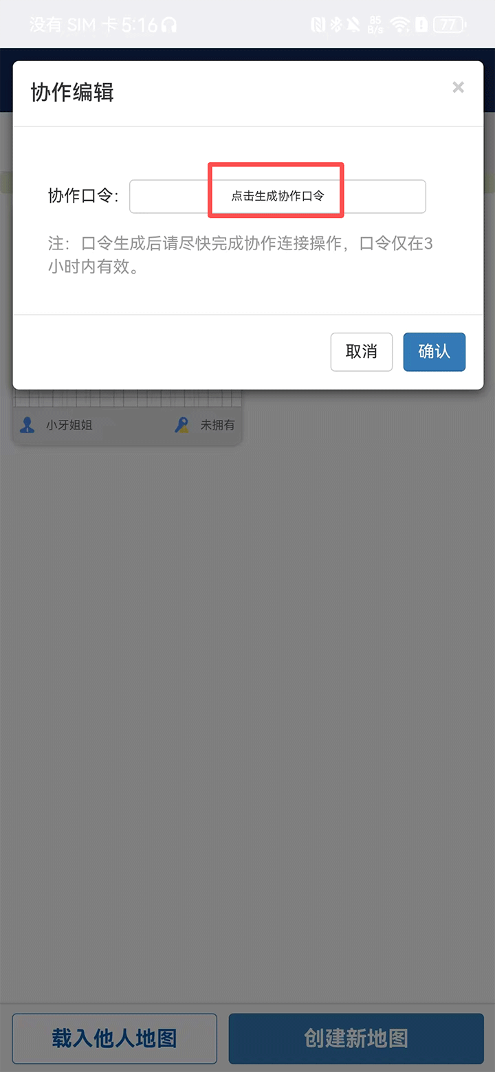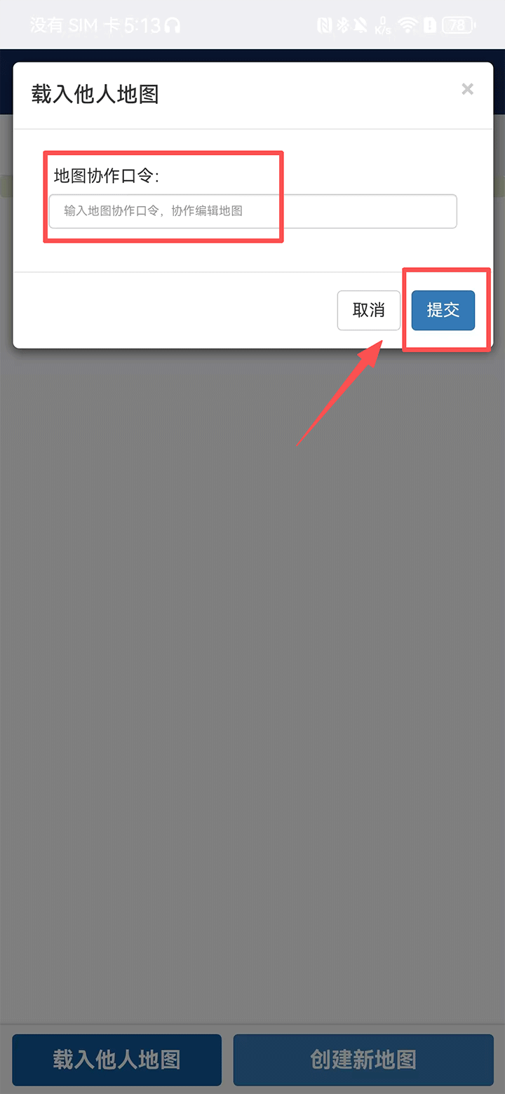 3、在顶部框内输入他人地图协作口令点击提交即可使用他人地图