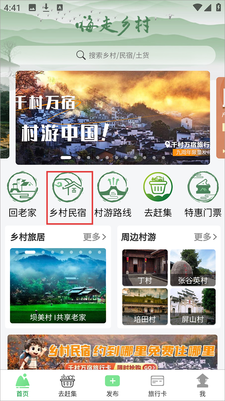 1、在本站下载安装app,进入软件首页点击乡村民宿;