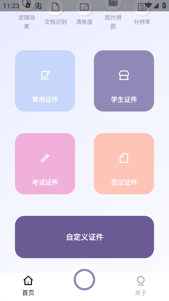 1、在app首页界面内选择你要制作的证件照类型,例如常用证件