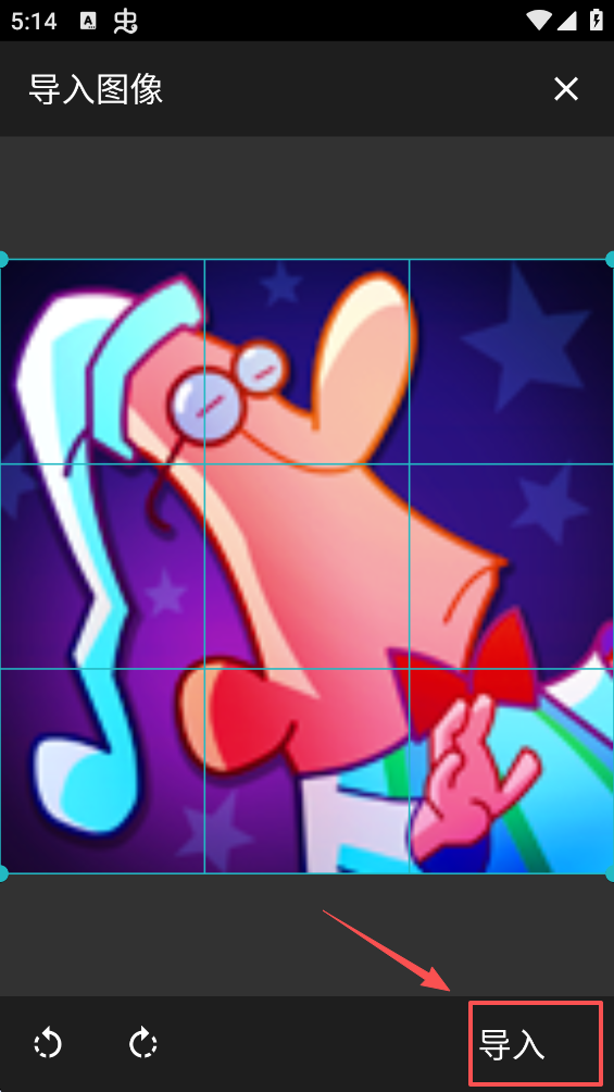 4、进入相册选择你要导入的图像,并裁剪出你要的部分后点击导入