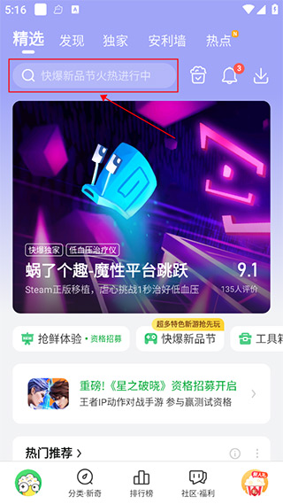 1、首先打开好游快爆,在搜索栏找喜欢的游戏。