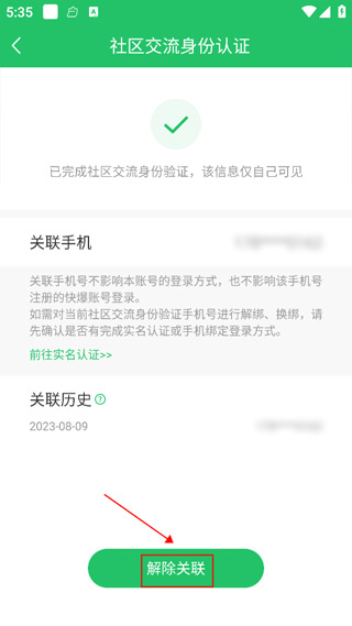 3、找到社区交流身份证并点击手机号进行解绑即可。
