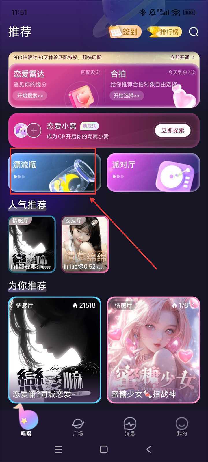 1、在本站下载安装app,进入软件首页点击漂流瓶;