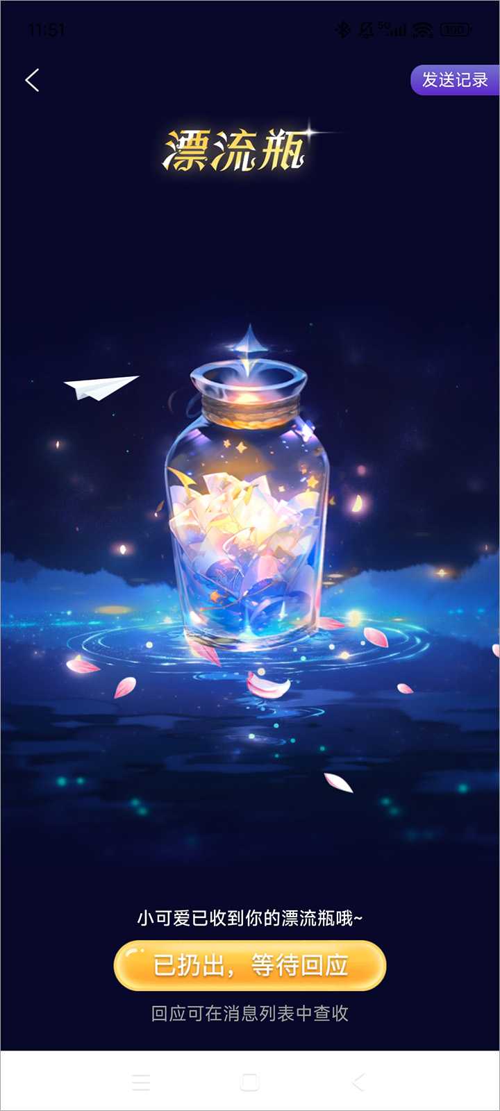 4、在信息页面可以看到接收到你漂流瓶的人。