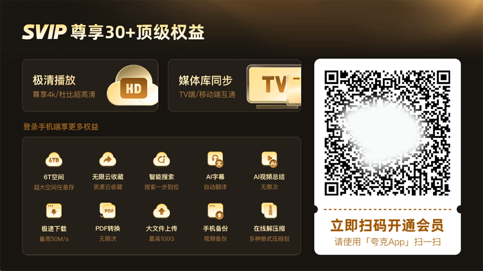 夸克网盘tv版是一款支持在智能电视或者电视盒子设备上安装的app,该软件将个人云端存储与家庭影音娱乐无缝结合,在这里用户可直接在电视上登录账号,畅享存储在网盘中的超高清4K电影、剧集、家庭照片和视频,且无需繁琐的下载传输,即可实现高速流畅的在线播放。同时其还支持多种视频格式解码和音轨切换,不仅为你带来沉浸式的家庭影院体验,还极大提升了在大屏上管理和欣赏个人云端资源的便捷性与享受。