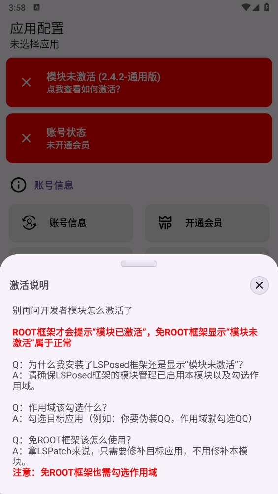 2、如果你的app显示模块为激活时,你需要为你的手机安装ROOT框架