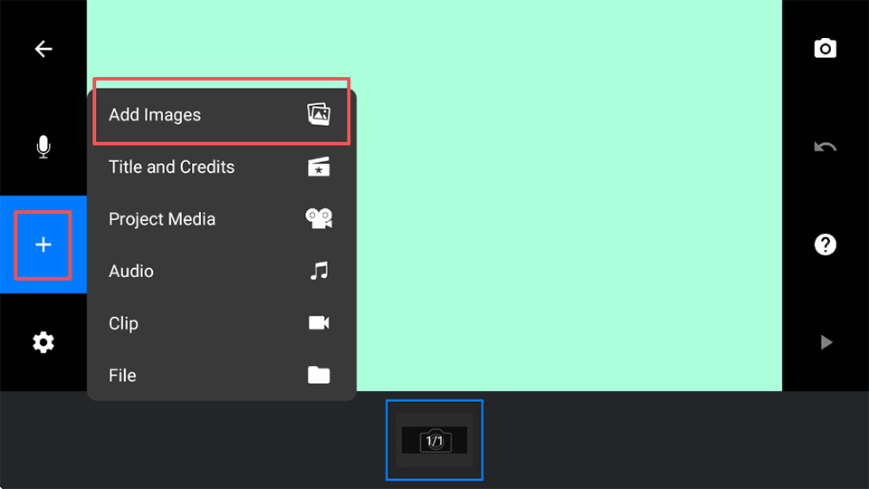 2、在新项目内先点击左边+号键,在点击添加图片
