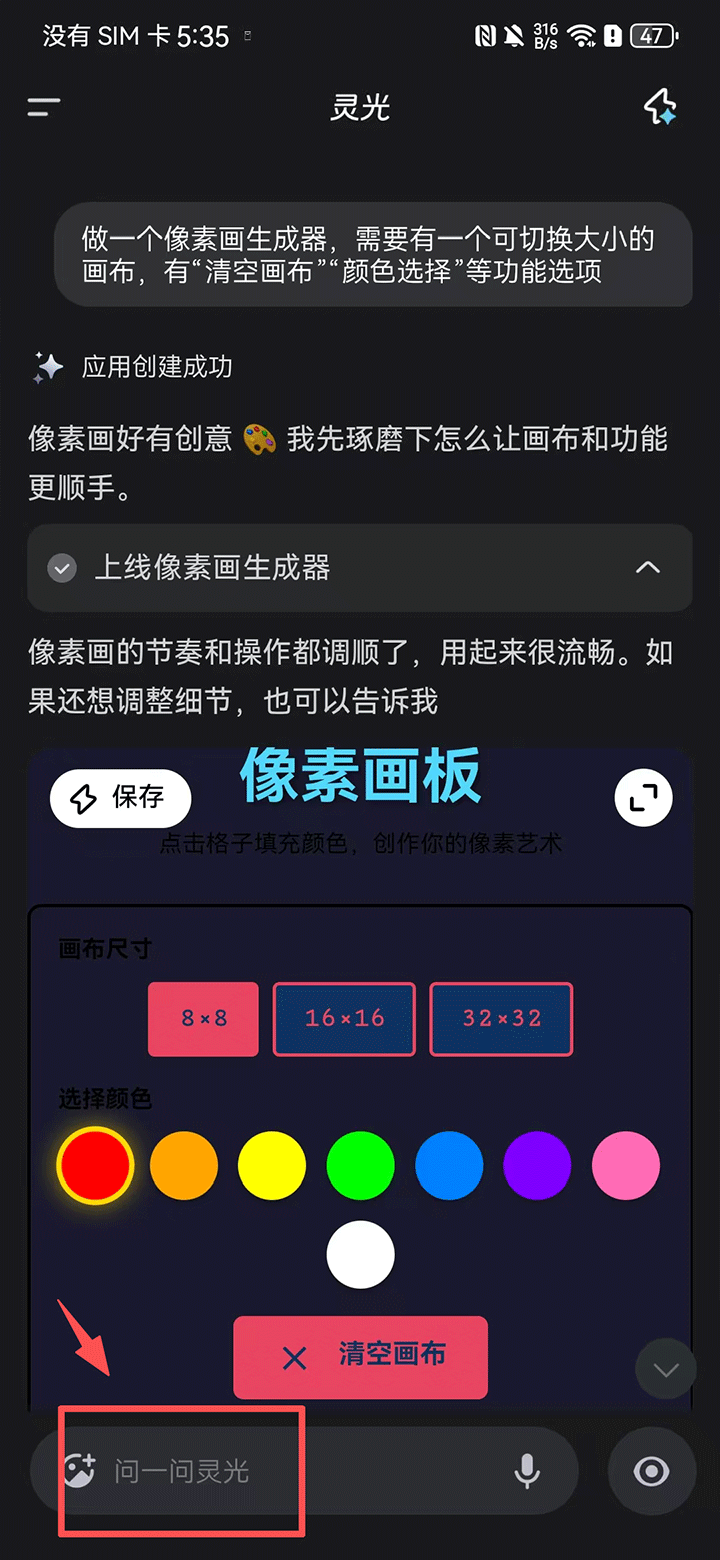 3、进入生成界面内后,在底部搜索框中输入你的要求并发送,等待app为你生成